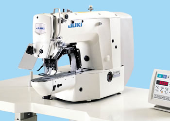 The machine is provided as standard with as many as 50 different types of sewing patterns including semilunar bartacking, round bartacking, radial tacking as well as conventional bartacks.